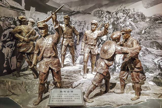 毛ZD等ZY领导人在政治局会议结束后,当晚在寺院大雄宝殿前的院坝内,召开了中央直属纵队和干部团的部分指战员会议,毛ZD在会议上指出:党中央决定坚持北上的路线是正确的,南下是没有出路的。