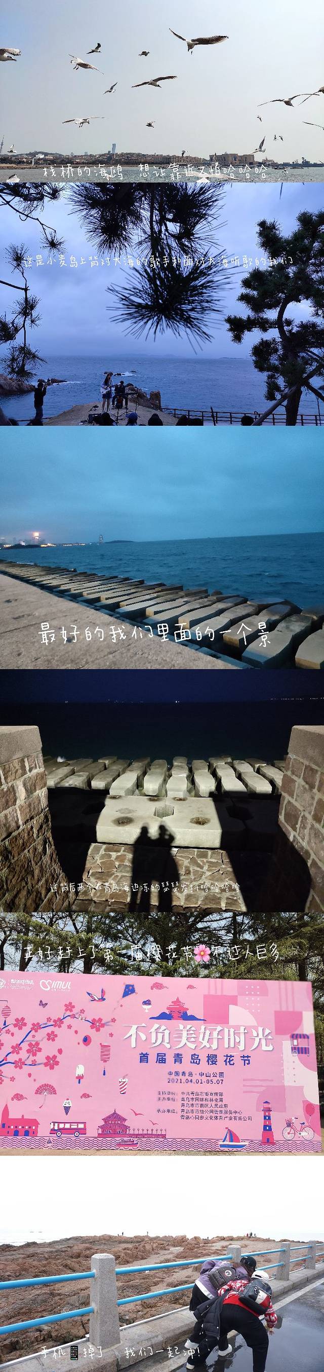 我们还有很多地方没去 没有把青岛走遍 但是对于我来说 来青岛就是来看海的 走这一遭看到了海就值得了 要是能早起的姐妹可以晴天去早点起来去看日出 青岛朋友告诉我们看日出差不多要五点多到海边 4月的青岛海边还是很冷的 不过也有不一样的风景 看了海鸥和樱花 希望以后和我的宝藏女孩走遍每一个城市