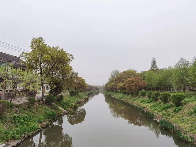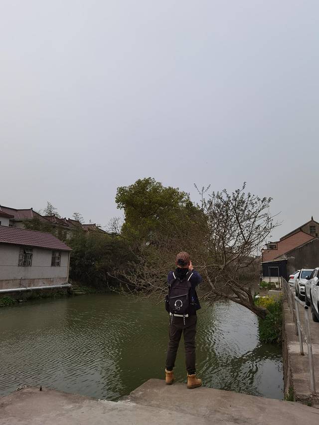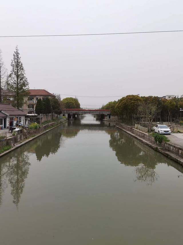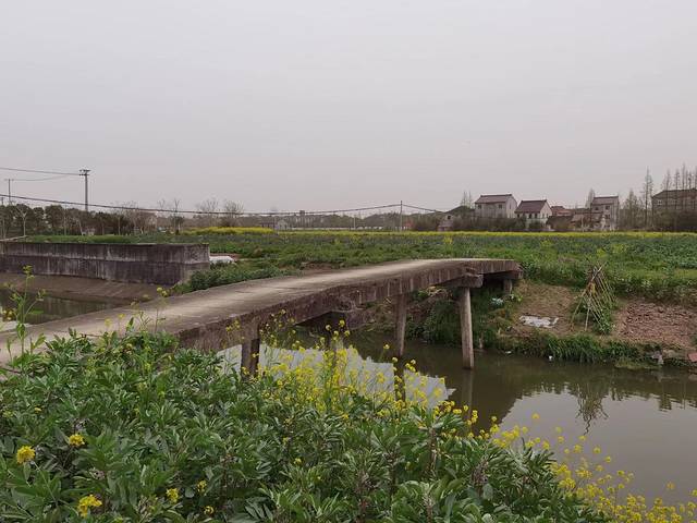 在柘林镇看完新城、老街和华亭村后,我们搭乘公交奉贤19路,去最后一个景点“奉贤华亭海塘”,阴差阳错,没到点就提前下车了,下车后找那块“奉贤华亭海塘”的石碑,找来找去找不着,问询路人也不得而知,后来感觉应该往东走,然后就凭着感觉瞎走、然后走进一片小树林、然后走出这片小树林、然后柳暗花明又一村,看到了一个小村庄、然后就看到了这座不起眼的平桥、然后又看到了这一块石碑、然后没想到这桥是奉贤区文物保护点、然后,哇偶!周边的景色居然还很美……