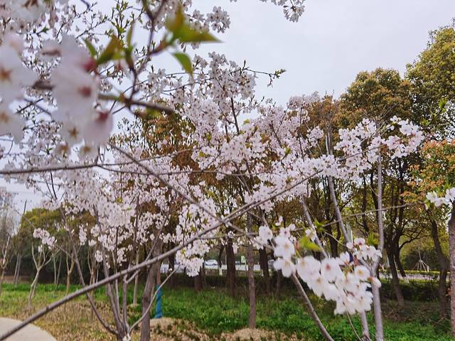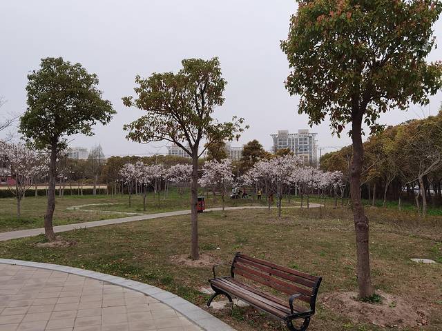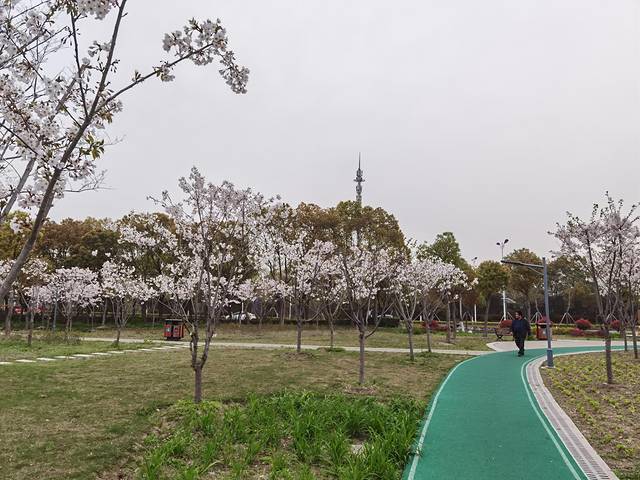 园内设有健身步道、慢行步道、各类健身器材等,眼下正好是樱花盛开时节,园内的樱花开得很烂漫,走过路过进去打卡一下,也算是到过了哈。