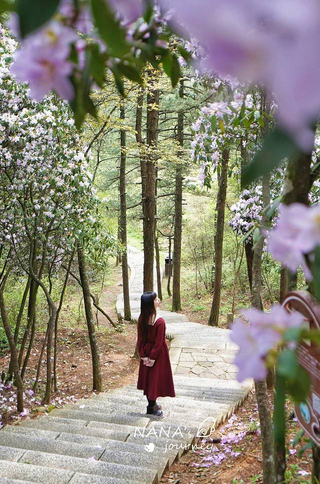 而春天,也正值高山杜鹃花开放之时,景色迷人,如痴如醉。配上点烟雨,又是另一番感受。