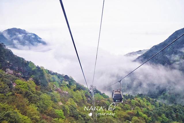 索道一共分两段,来回峡谷两次~最后的终点便是青云栈道入口的下方,也算是省了一段爬山路了~