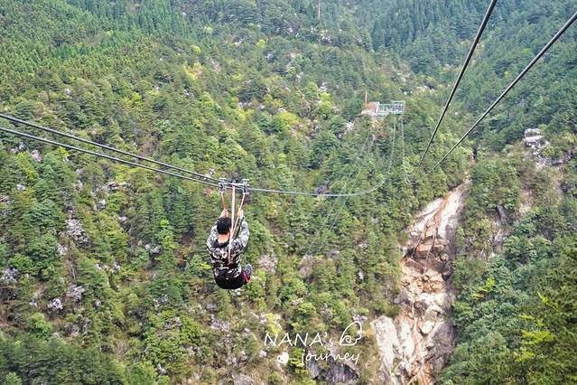 而滑索的同时,也能欣赏到对面山壁上飞流直下的青云瀑布,落差高达100米,这样的壮丽美景与刺激同享~
