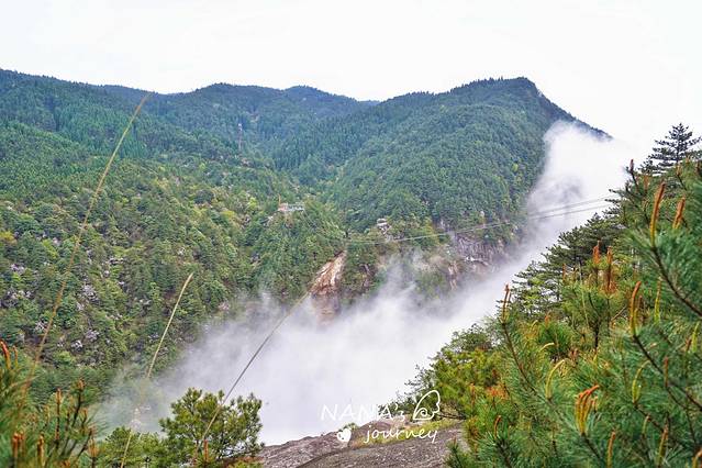 明月山有个非常出名的挑战,便是这奔月滑索!奔月滑索是 亚洲 落差最大的滑索,飞过明月山的峡谷。而今天云海正好,当一回仙人一定是个不错的选择~