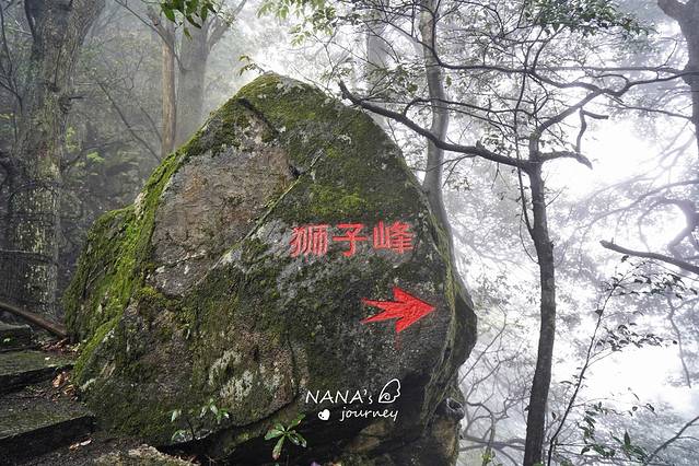 缆车中站往上走便是 狮子 峰,据说有一座山峰形似 狮子 ,身后还跟了一只小 狮子 而得名,可惜我们当天大雾还下暴雨,无缘相见了。