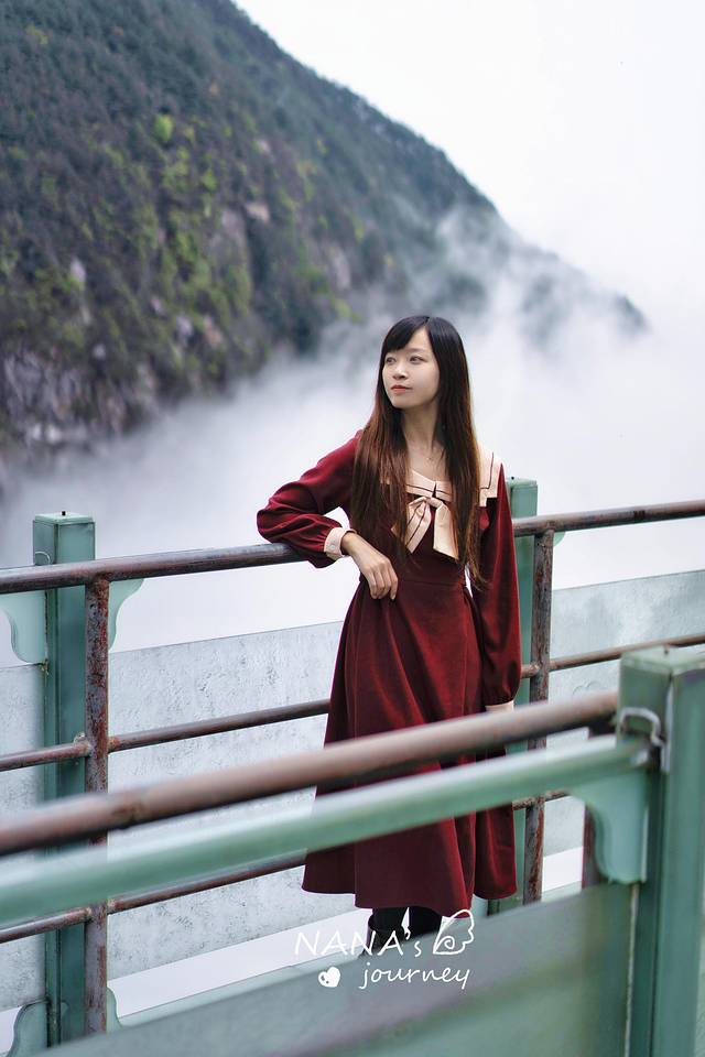 这里高空望尽了明月山的山水美景,虽然有点怕怕的,但美景还是吸引住了我们。