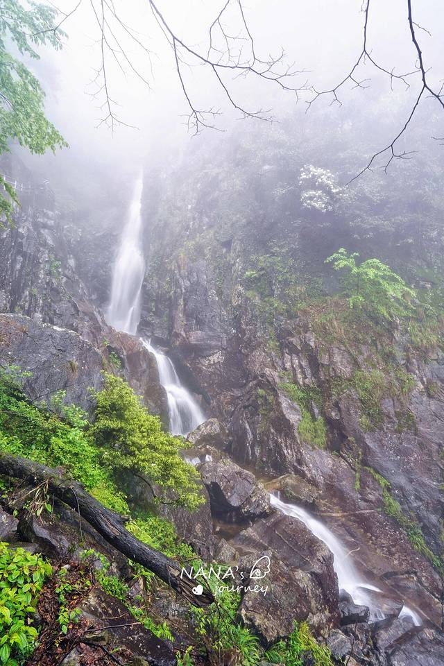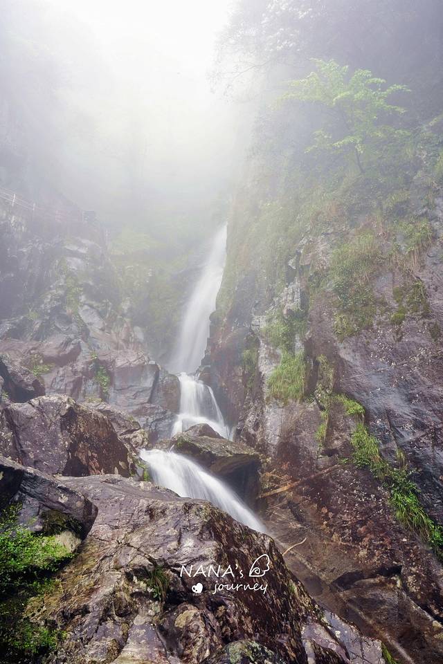 明月山的缆车是有两站的,常规的玩法是先直达山顶,玩了青云栈道月亮湖等,坐索道下到中站,然后顺着瀑布往下走~