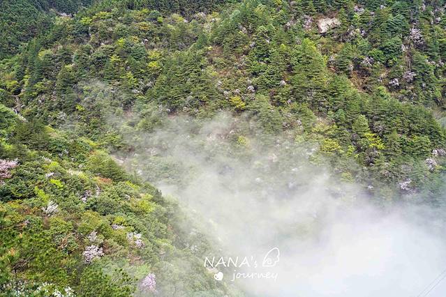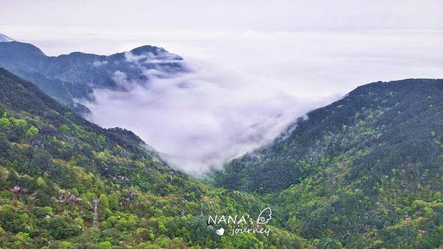 突然缆车下方逐渐看到杜鹃花,雾渐渐变浅。就在那么几秒钟,世界豁然开朗,是云海、是花海,这就是明月山给我的第一份见面礼,感动的让我说不出话。
