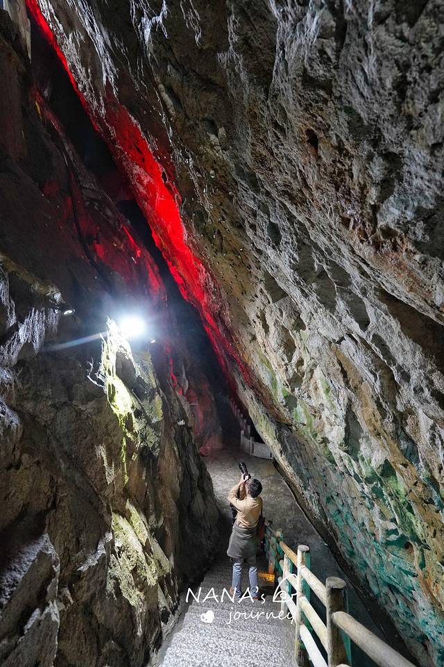 星月洞,要去青云栈道必经的地方,进洞后沿着楼梯而下,左弯右绕,对未知略有慌乱。突然抬头,头顶星空散发着彩色的光芒,小伙伴说“像银河一样”。原来这才是星月洞名字的由来~