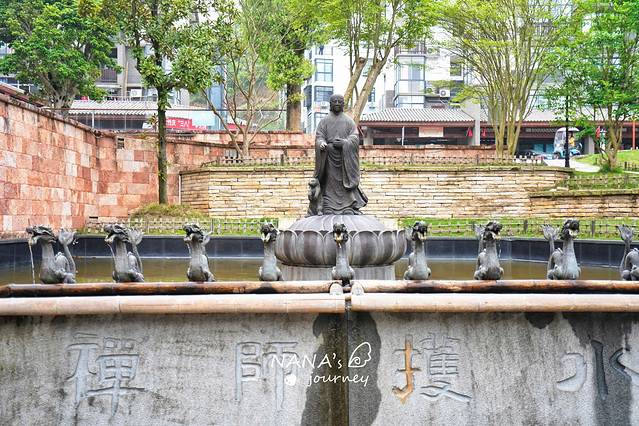 古井不远处,有一栋古城楼,走过门,便是 定远 禅师的雕像, 定远 禅师是对温汤镇有着重要意义的人物。