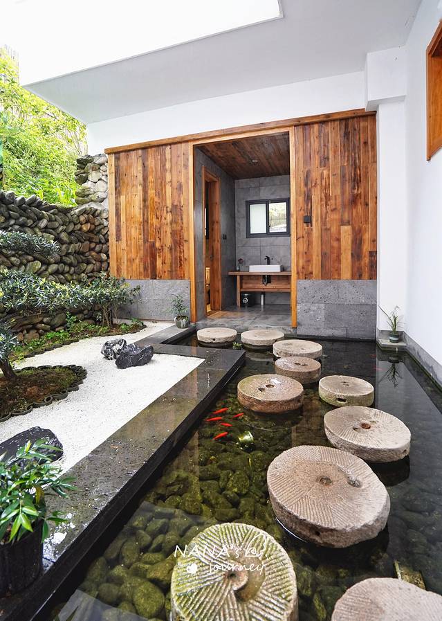 民宿的设计理念,很简约很原色风,庭院的设计却有着日系山水的理念,很文艺小清新。