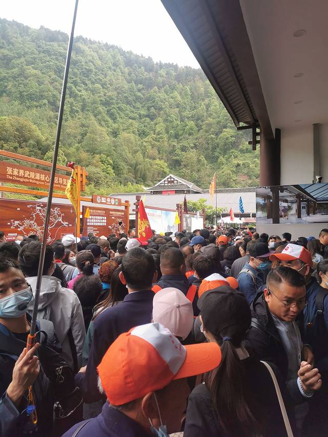 选择四月中旬错峰出行就是为了避开清明和五一 没想到还是撞上了广西的“三月三”和普天同庆的周末 从景区大门口-搭乘环保车-坐百龙天梯 用了两个小时 排队排疯的一天开始了