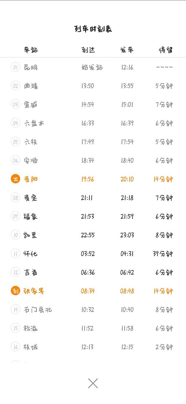 贵阳到张家界一共三趟直达火车 另外两趟都是半夜 这一趟20:10-次日08:34的火车时间就显得非常合适了