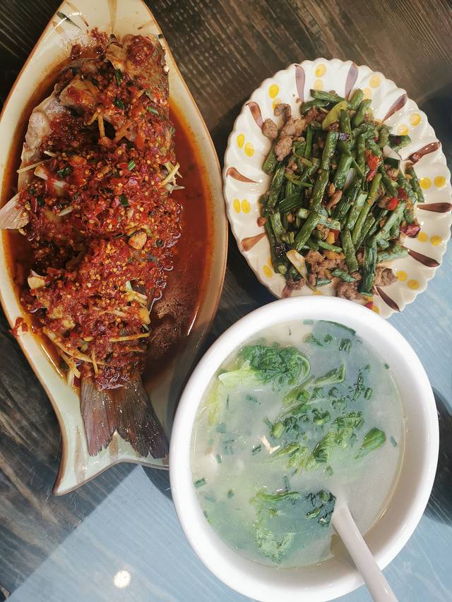 峡谷湾•全景客栈的晚餐 之前物色酒店的时候 就被这家下面满满的夸赞做菜好吃的客栈吸引了 点了特色剁椒全鱼 不爱吃鱼的小倪表示:针不戳