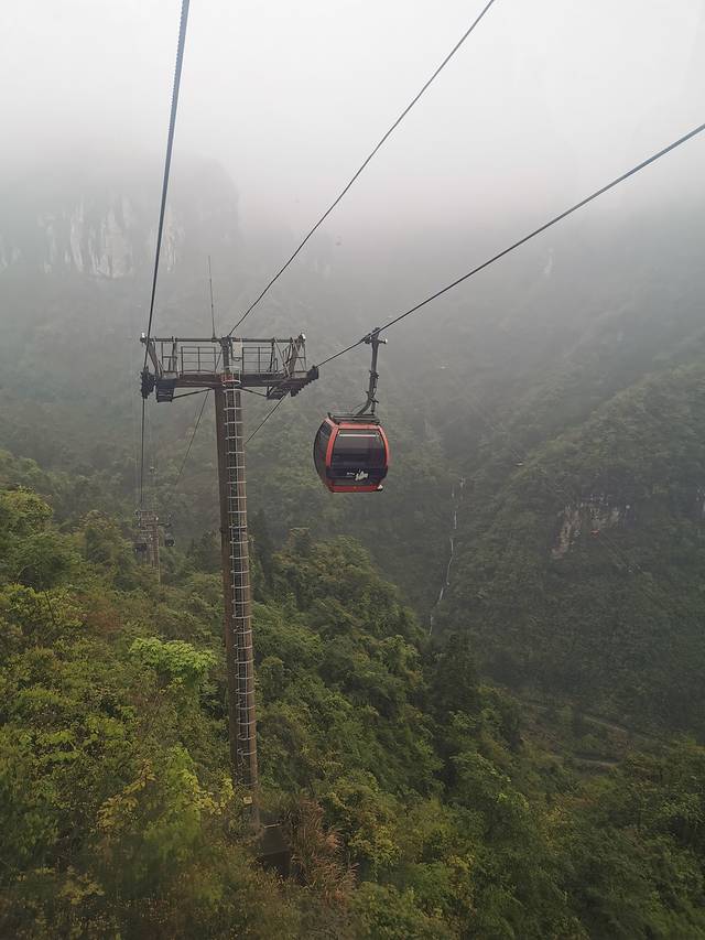 乘坐天子山索道下山途中