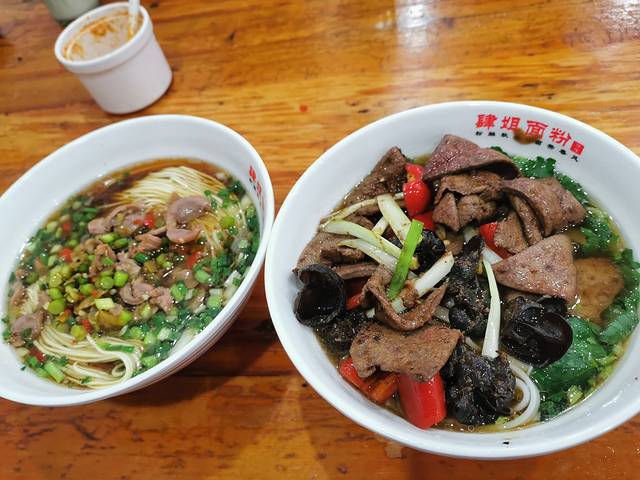 点了猪肝粉和酸辣鸡杂面 猪肝太香了吧 分量也多 鸡杂面是招牌之一 也不错