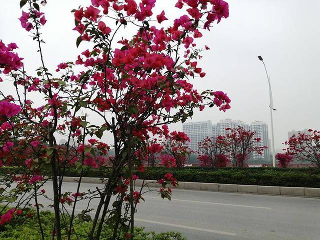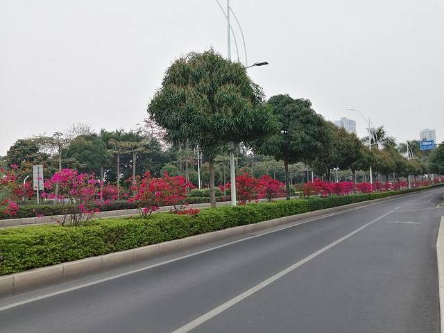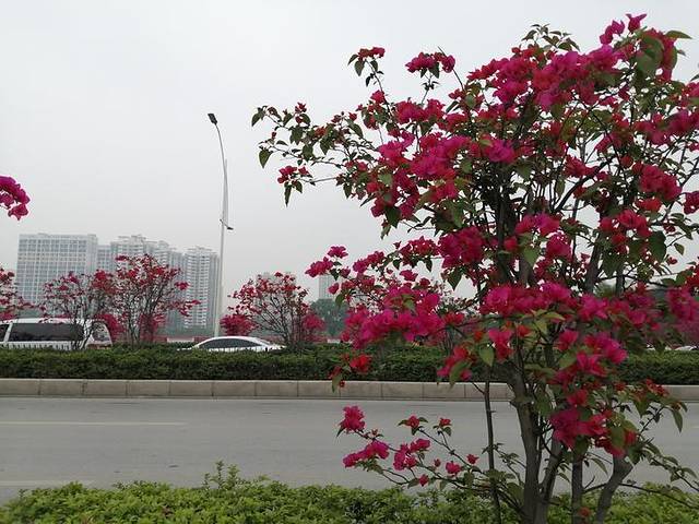 三条隔离带上都种了三角梅