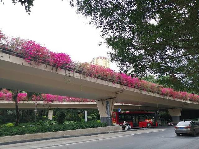 民族大道的竹溪立交桥上,三角梅做围栏,美美的