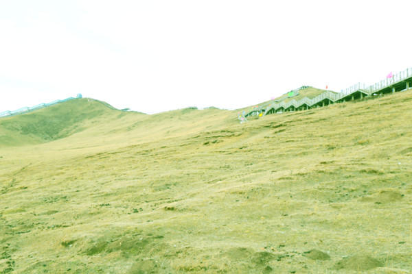 要欣赏第一湾景色,还须登上山坡上的观景台,此处海拔近4000米,沿木栈道缓步登高,每登一步就喘得慌。不远处还有一条自动扶梯直达山顶观景台,可省游客的脚力。