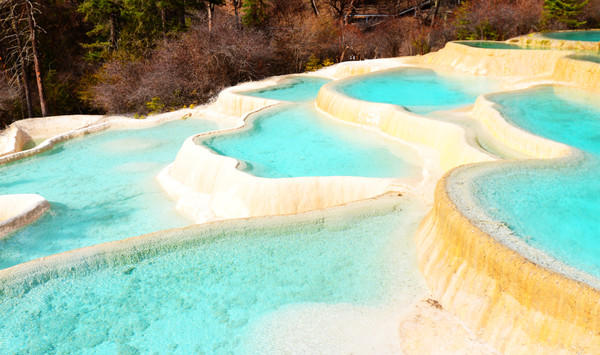 边石坝色泽鲜润,多为白色和浅黄色,真的像黄龙。