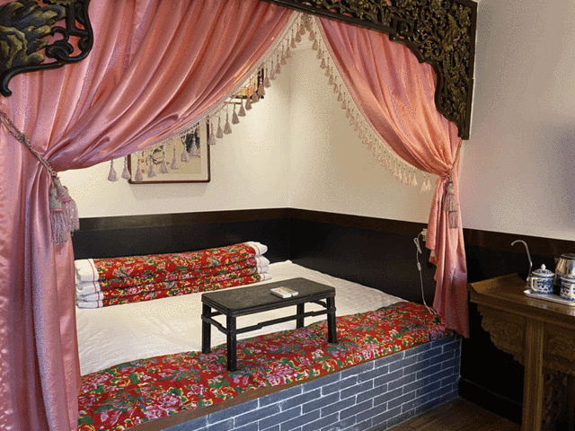 第二天入住了 #平遥裕成源客栈的龙凤床房,房间很宽敞,床设计成了古代的形式,很有新意。床软硬适中,有空调,服务也很好。
