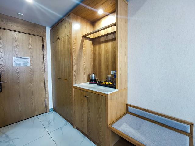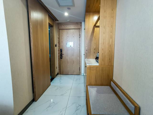 酒店主打藏茶主题,简约而不简单极具特色。室内大量墙面采用茶砖或茶条装饰,茶香四溢沁人心脾,非常利于休息和睡眠。房间内提供藏茶免费品尝,床品选择考究,床单丝滑、被子轻薄,洗漱用品一应俱全、品质上乘,特别是拖鞋柔软舒适,绝对五星级体验。酒店位置极佳,临近会展中心,距离地铁步行5分钟,酒店楼下有大型超市,各种饭店和烧烤,吃饭极其方便,1000平停车场免费停车。来长春住羽吉藏茶酒店,四星级标准三星价格五星级享受!