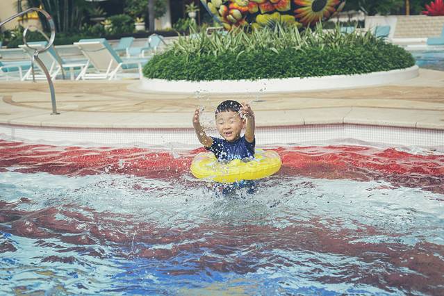 酒店的恒温泳池,拍照也是超好看的,非常出网红大片,只是我带着孩子下水游玩,必须要保证小孩子的安全,所以也没人帮我拍照了,只能待在旁边,看着孩子开心的玩水(有免费的儿童救生衣可以租用,但是没有儿童小号的游泳圈,我们是放了气从家里带过来的,泳池员工可以帮忙免费充气)