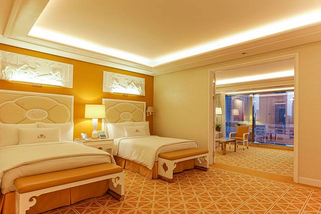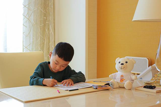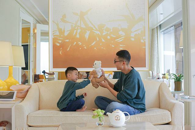 带熊孩子入住澳门永利皇宫表演湖景套房,近100平米的房间配有一个超大落地窗的景观阳台,可看酒店的表演湖喷泉,尤其是晚上景色绝美,房间还给小孩提供了泡澡小玩具,及儿童洗漱用品,超贴心。