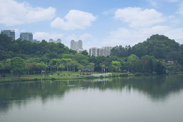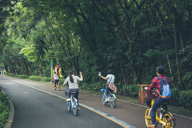此外公园是免费的,可以租共享单车骑行,环湖一圈下来这的是神清气爽。