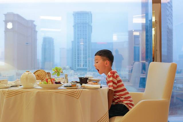 话说在永利宫就餐,是可以看到外面的喷泉表演的,超大的无边落地窗,几乎零距离感受,而且也会照顾带小孩子的食客,准备儿童餐具等。