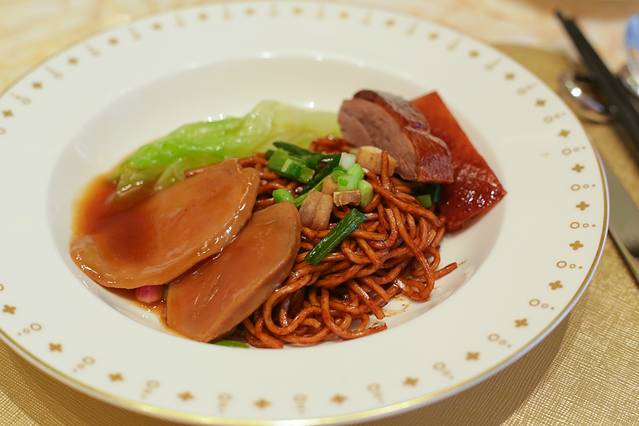 鲍鱼烧鹅葱油捞面作为主食,本以为很普通,但是烧鹅的外皮酥脆到一口咬下去能听到响声,鲍鱼的鲜味也更加提升了面条的整体味道,不愧是出自大厨之手,味道真心不一样。