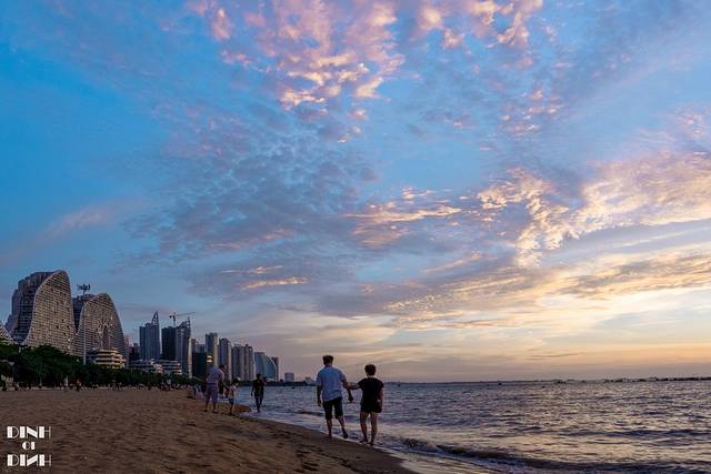 沙滩上很多来散步的人,游客比较少,感觉都是周边小区吃过饭来散步的居民