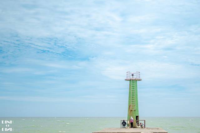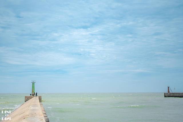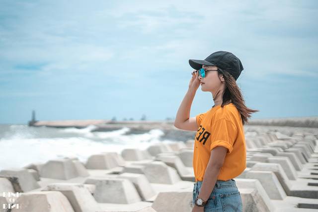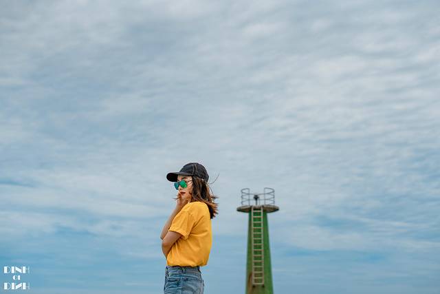 我们刚去的时候没有太阳,几乎可以说是狂风大作,在堤坝上拍背景灯塔的时候,只能迎着风站着头发才不会扑到脸上,但是图片拍出来,飞舞的头发,好有大姐大的气势呢