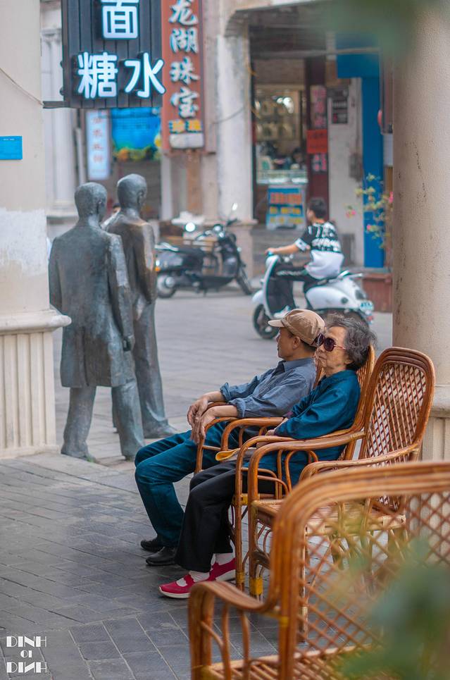 捕捉到老街上一对老夫妻游客,他俩在骑楼下一坐,真的特别有感觉,历史的沧桑,和人的经历似乎融合起来了。