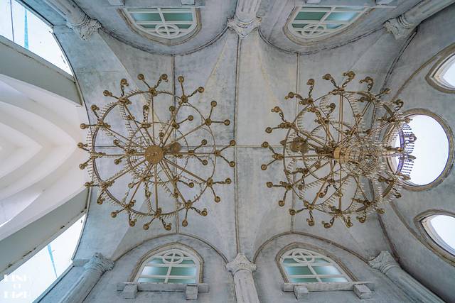 进入小教堂,没想到天花板还有那么精美的吊灯,于是来了一个仰拍,燕子也美美的出镜了