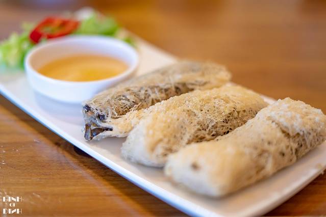 越式春卷有两种,一种是油炸的,像越手势这个就是,还有一种是浸湿了春卷皮直接包烹饪好的馅料的,那种口味更清爽一些,不过都是我的最爱