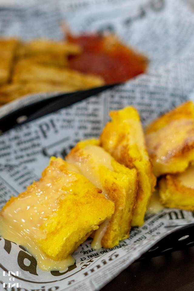 在广东吃的西多士是厚厚一块西多士,中间还夹着花生酱,但是这边的西多士是面包片,各有各的味道,虽然是脂肪炸弹,但是真的无法拒绝