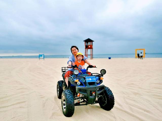 十里银滩是海陵岛最大的海滩,沙质细腻的,挺美的。进入要收费,两张门票赠送沙滩摩托共100元。
