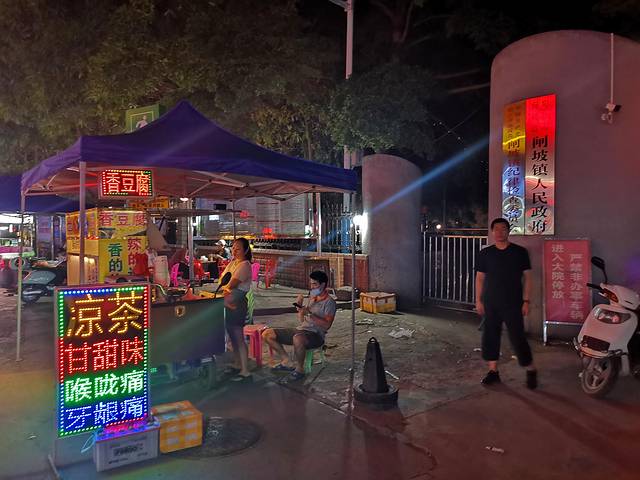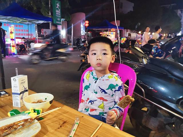 晚餐去闸坡镇的街上先洗头后吃饭,接地气选的一个大排档,味道很好诶,煲粥、烧烤、汽水,完美搭配。
