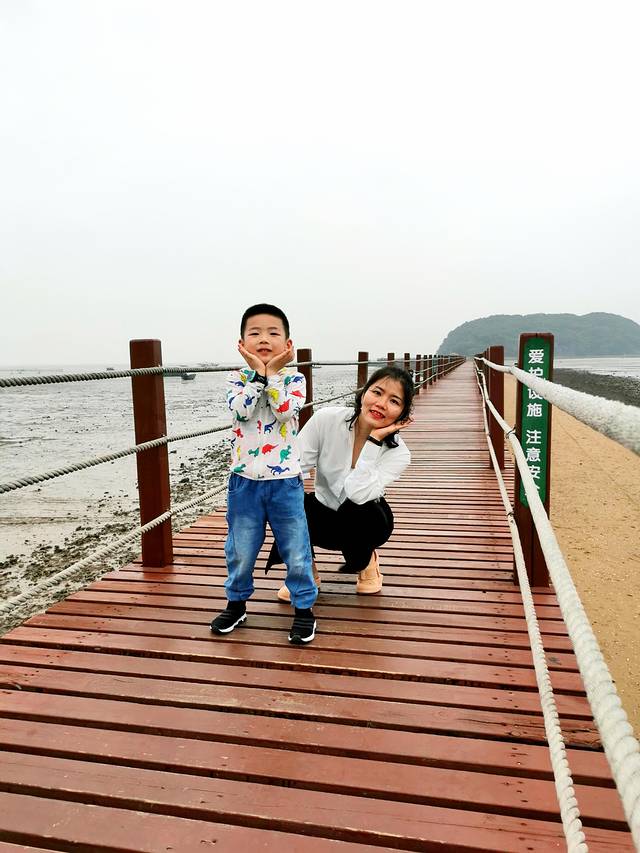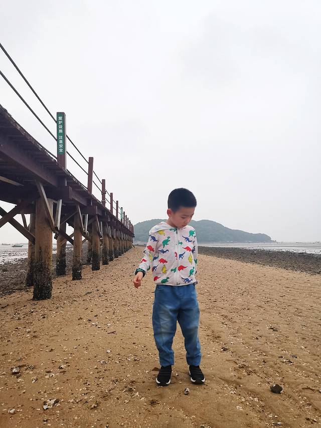 走了好大一段路,正好有楼梯可以下到滩涂上,我便下去近距离看渔民怎么挖生蚝,臭小孩开始并没有打算下来,和他妈妈走栈道往回走,看到我在滩涂上捡贝壳生活,他就嫉妒了,又急又燥的从栈道往回跑追我了,追不上还快急哭了。