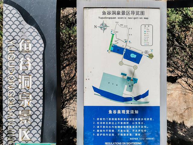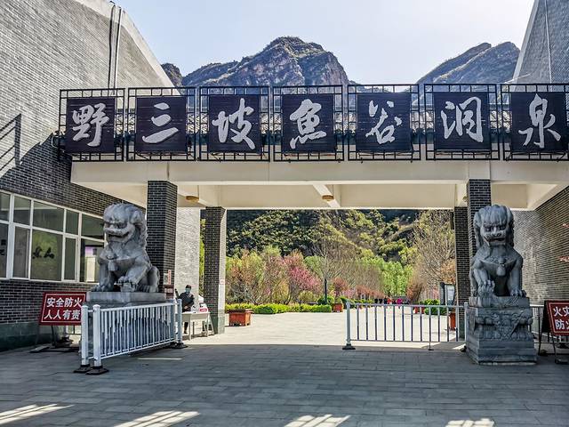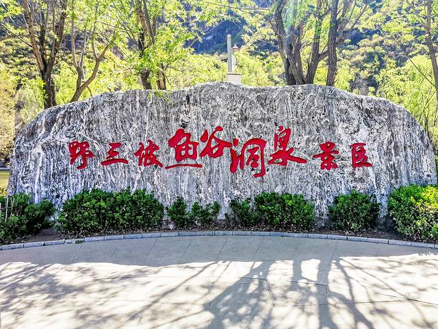 进入大门迎面是一块刻有“野三坡鱼谷洞泉景区”的巨石,很多游客在这里拍照