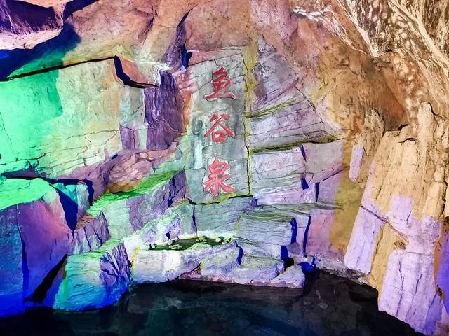 鱼谷洞内类似石人、石马的钟乳石和千奇百怪地石幔雕像,别有洞天。进入洞中,千姿百态的钟乳石、石笋、石柱和宽敞高大的洞穴,曲折迂回的通道在灯光的照射下宛若地下龙宫,让人流连忘返。