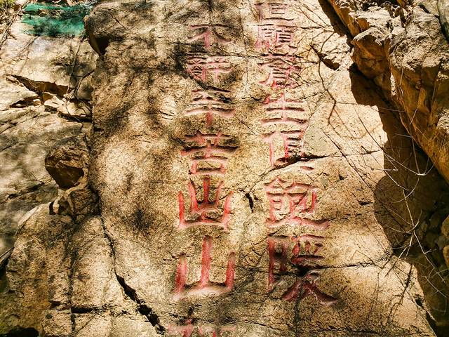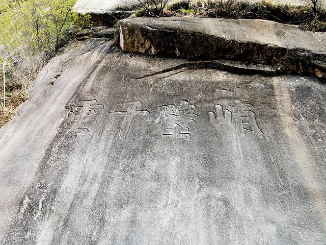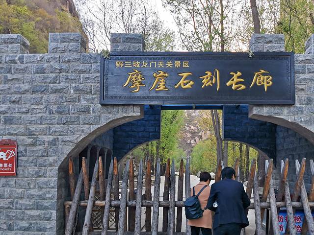 出了猿人谷,沿小西河河南岸向东走1公里到达龙门天关的摩崖石刻长廊,山谷的一侧刻满了各种雄浑的字迹。