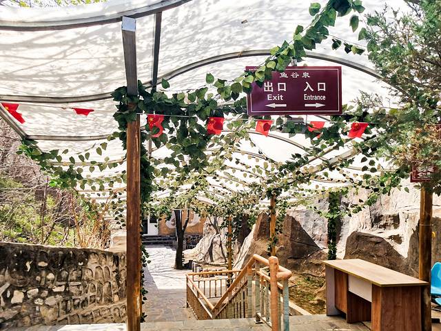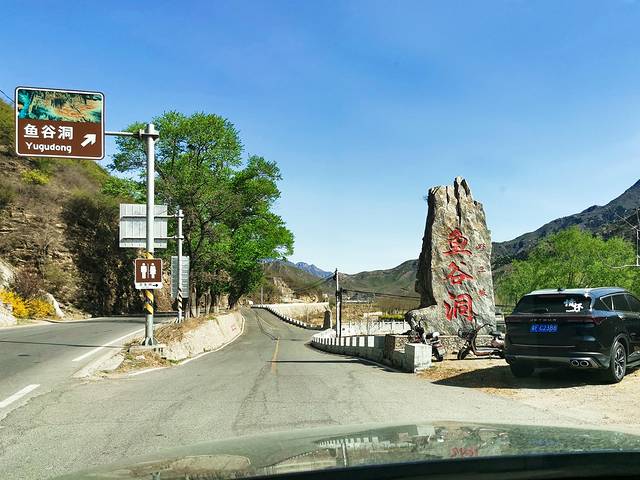 首都环线G108百里峡出口出高速,沿京昆线向北京方向4.2公里开车10分钟,有鱼谷洞指示。