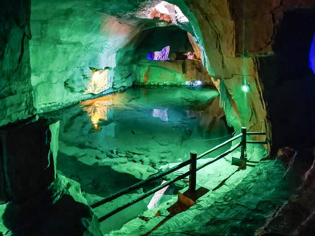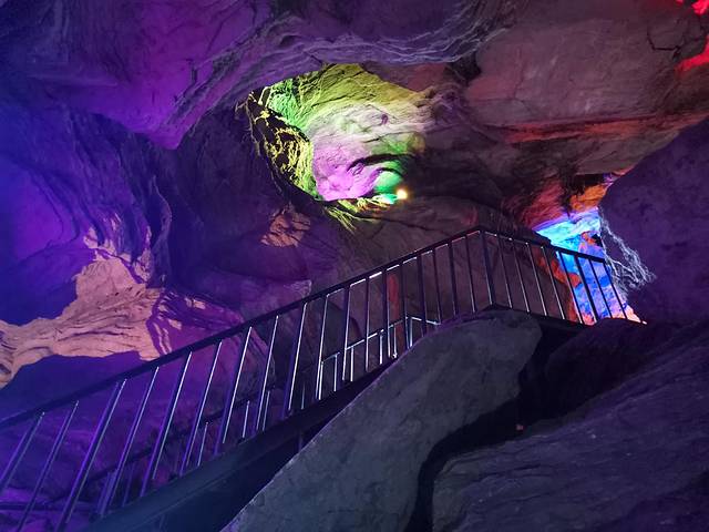洞中布置的彩灯非常的漂亮,要跟着解说员前进,不然会错过很多的景点
