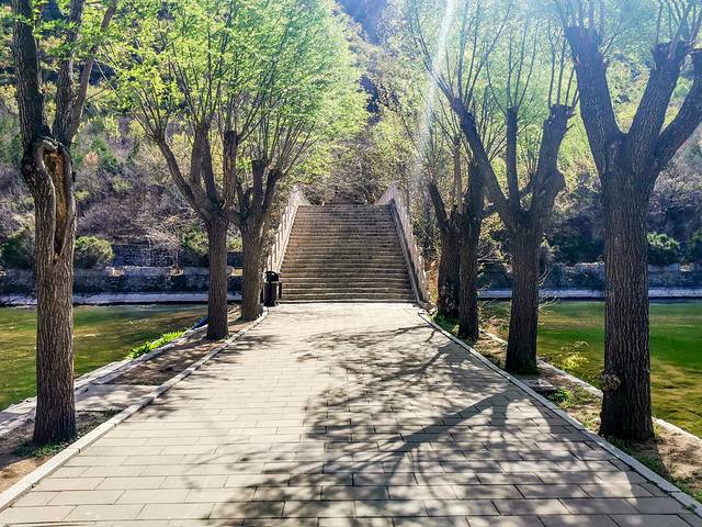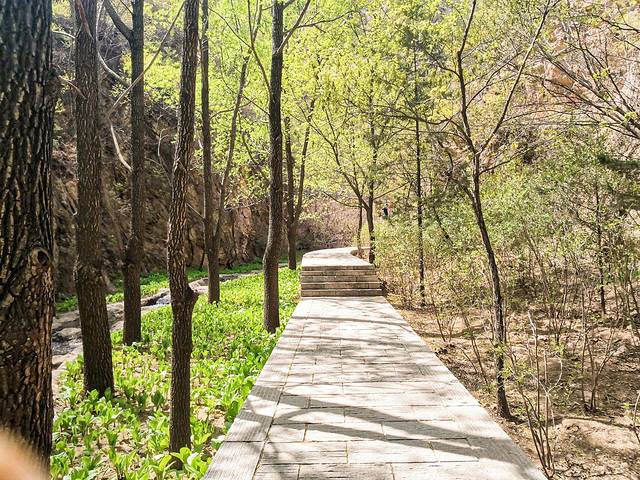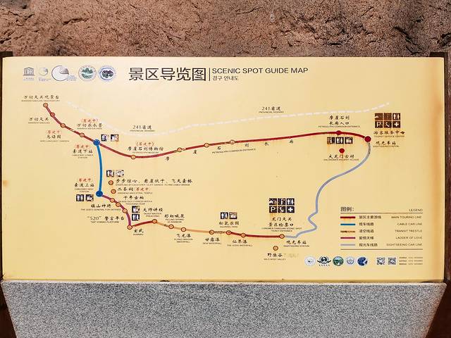 从大龙门古堡游客中心走到龙门天关上天沟入口1.6公里,也可以乘坐景区摆渡车。