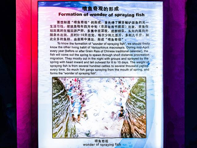 鱼谷洞泉历史悠久,远近闻名,是传奇般的古清泉,此泉甘冽清凉,它以每年谷雨季节前后向外喷鱼而被列为世界奇闻,是河北省“八大怪泉之一”。涌水量为每秒0.42立方米,喷鱼最多时达2000余斤,每尾最重约六七两。这种鱼的学名为“多鳞铲颌鱼”,俗称“石口鱼”,每尾350g左右,黑脊白腹,鲜美可口,居民常用篓筐在泉口捕捞,每年捕捞在1,000kg以上,可称野三坡一大奇观,也是人们公认的中国八大怪泉之一。