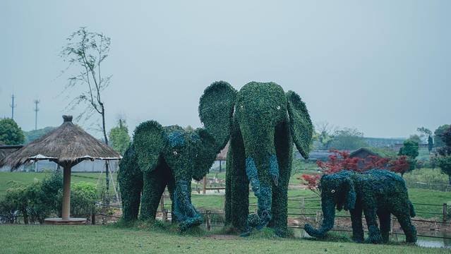 这里还有很多用植物所打造的外形迥异的艺术设计 大象 绵羊等等