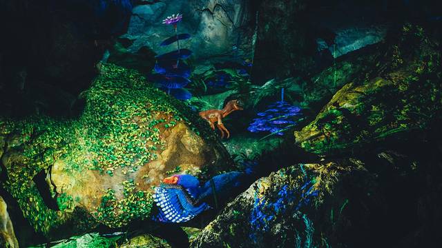 在不同的时间里 每一处都会上演不同的灯光表演 从侏罗纪时代 再到现在