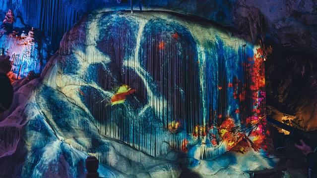 去过中国很多的溶洞 但把灯光秀引入到里面的却不多
